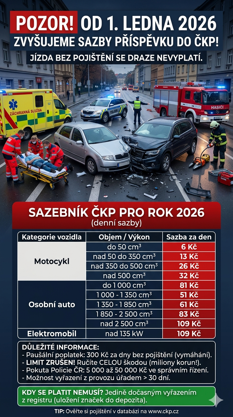 Sazby ČKP pro rok 2026 sice vzrostly, ale stále jsou jen nepatrným zlomkem toho, co zaplatíte v momentě, kdy se něco skutečně stane. Nezačínejte každou jízdu s vědomím, že riskujete střechu nad hlavou a budoucnost svých dětí.